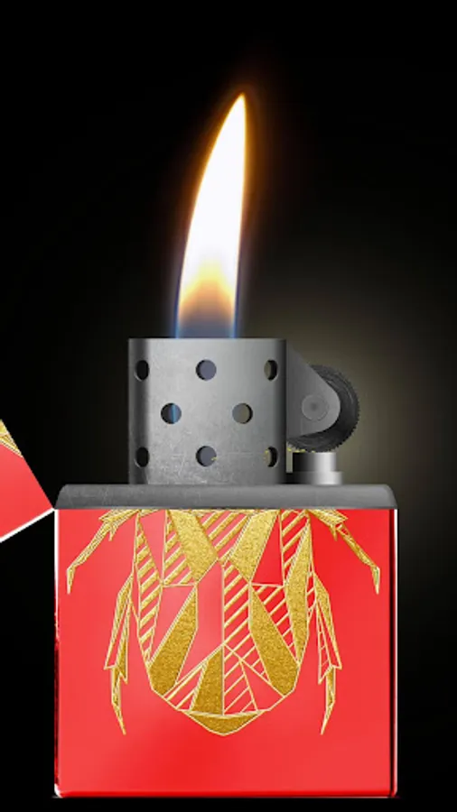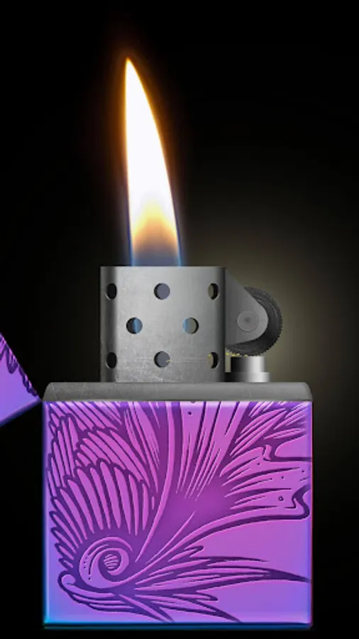 Use your finger or shake your phone to open cap of the lighter. When the top lid is open strike the stone wheel the same way you would do it with a real cigarette lighter. Sparks will appear under the flint and they should light the wick.