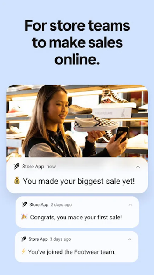 💬 Share your expert recommendations via Messaging and Video Chat. Go available to accept incoming requests from online shoppers, and chat via text or video. Show off how the products really look, and see what they've been looking at to tailor your recommendations.