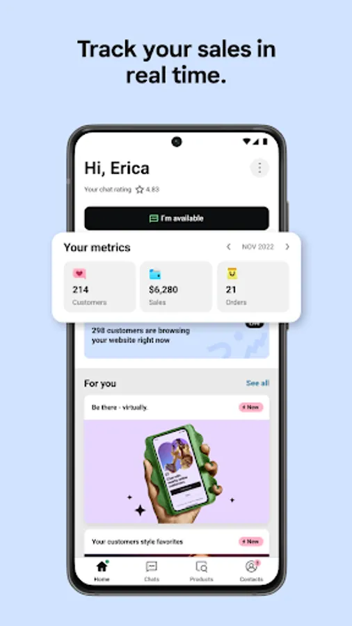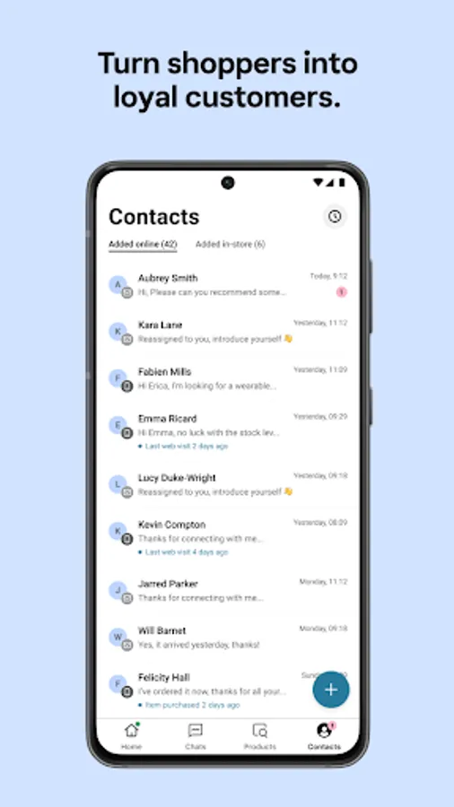 👥 Keep in touch with shoppers. It doesn't have to end after one chat! Invite them to join your exclusive Contacts. Keep the conversation going, send them updates, and more recommendations. Set reminders to make it easy to know when it's time to follow up.