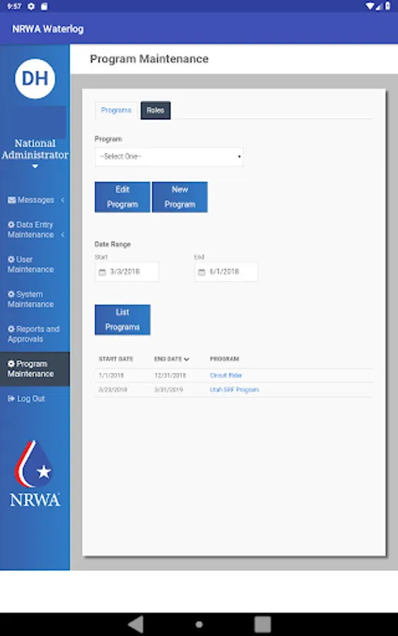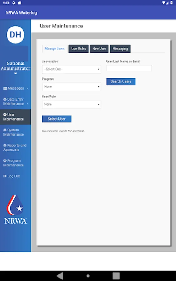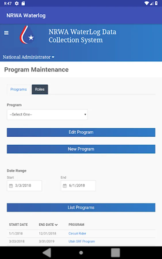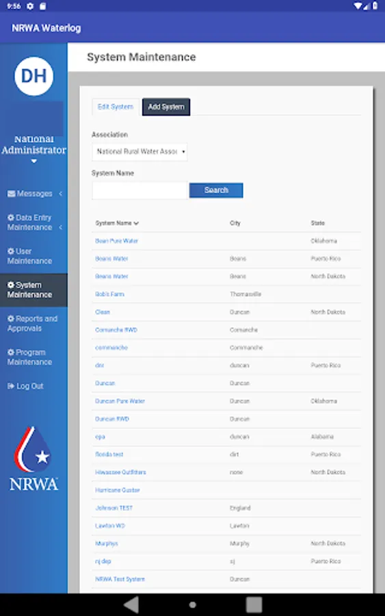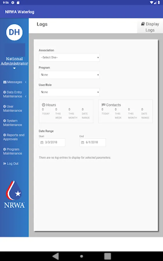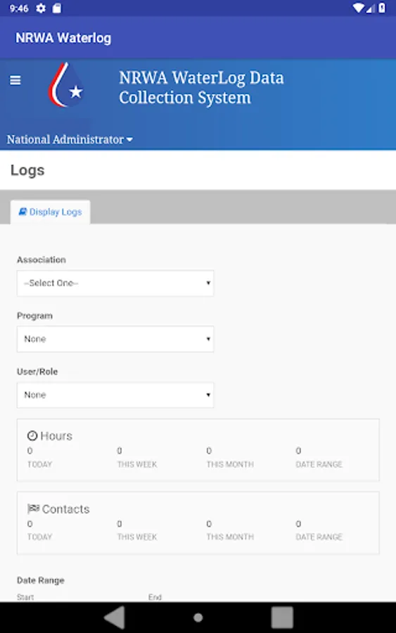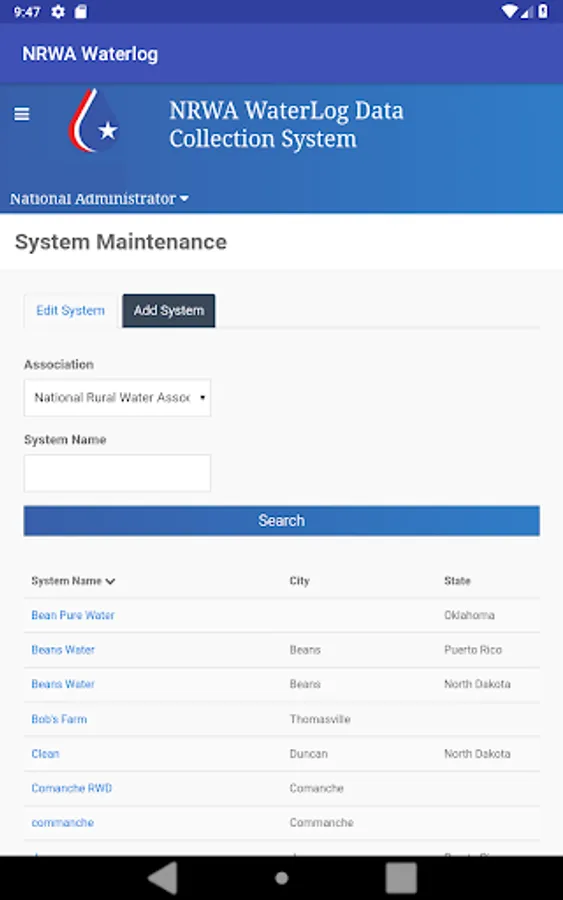 The Waterlog Data Collection System allows State Rural Water Association staff as well as state administrators to track program progress over time. The use of this app is limited by law to staff members of State Rural Water Associations, NRWA and their contractors only. If you have not been notified in advance by NRWA that you have an account for this app then you will not be able to login or use the app.