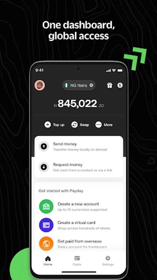 Payday is your solution for cross-border transactions. With its advanced technology and user-friendly interface, you can send and receive money, exchange funds, and make online payments with ease. Whether you're moving money from one country to another or from one account to another, Payday provides you with the freedom to receive money internationally without stress.