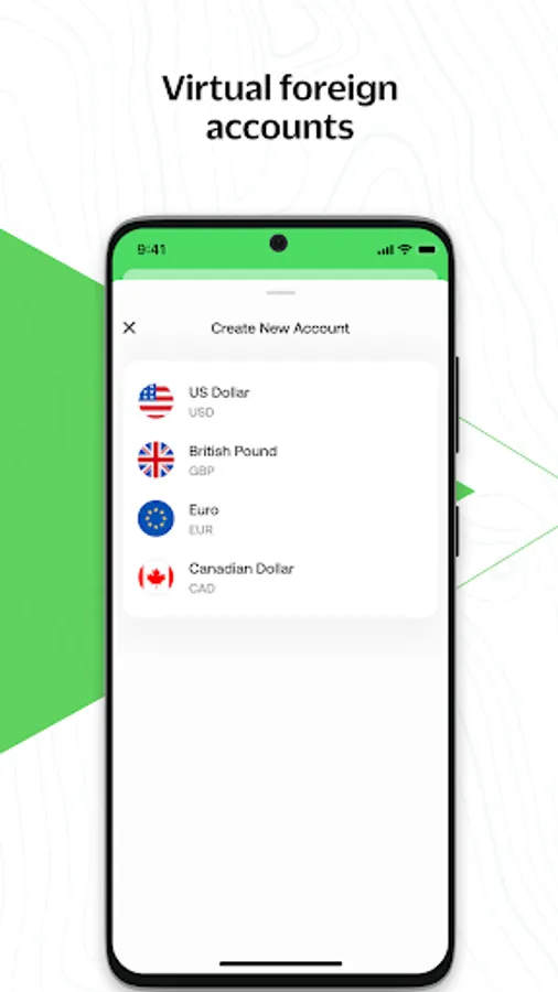 Payday comes with a virtual USD, GBP, and EUR account, which provides you with a secure and convenient way to manage your money globally. With this account, you can store, send, and receive money in multiple currencies and enjoy access to a wide range of financial services. Whether you're making online payments, sending money to friends and family, or exchanging funds with businesses, your international account is the key to a borderless financial world.
