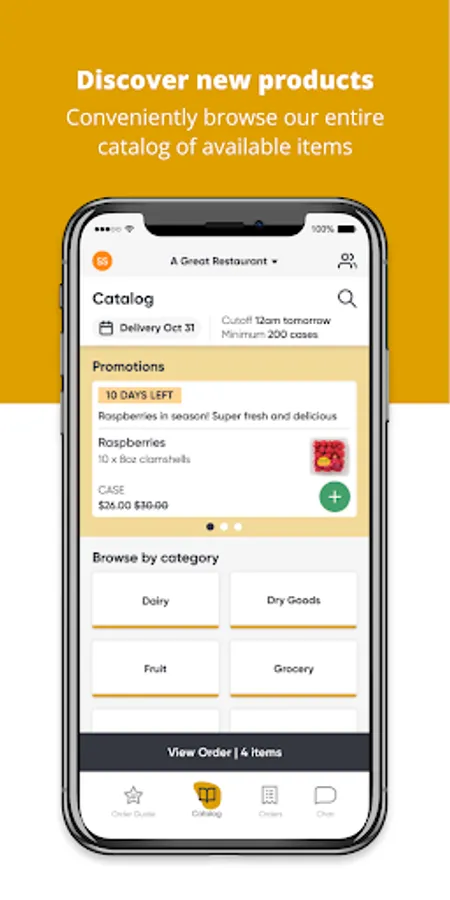 - Keep everything together: delivery days, cutoff times, order updates, and promotions all in one - place