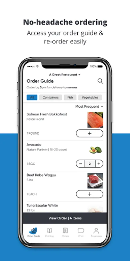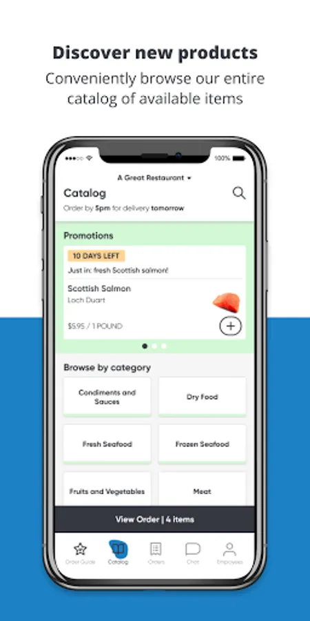Our mobile app lets you search our complete product catalog, manage and update your ordering guide, and buy what you need at the moment you need it. It’s part of our commitment to giving you an ordering experience you’ll love.