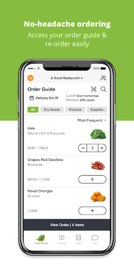 Our mobile app lets you search our complete product catalog, manage and update your ordering guide, and buy what you need at the moment you need it. It’s part of our commitment to giving you an ordering experience you’ll love.