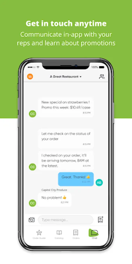- Get in touch anytime: communicate directly with your Capitol City Produce rep in the app