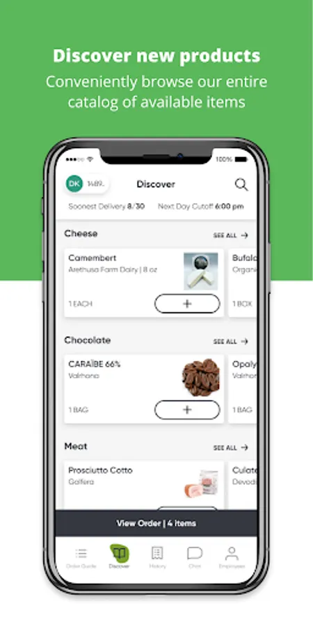 Our mobile app lets you search our complete product catalog, manage and update your ordering guide, and buy what you need at the moment you need it. It’s part of our commitment to giving you an ordering experience you’ll love.