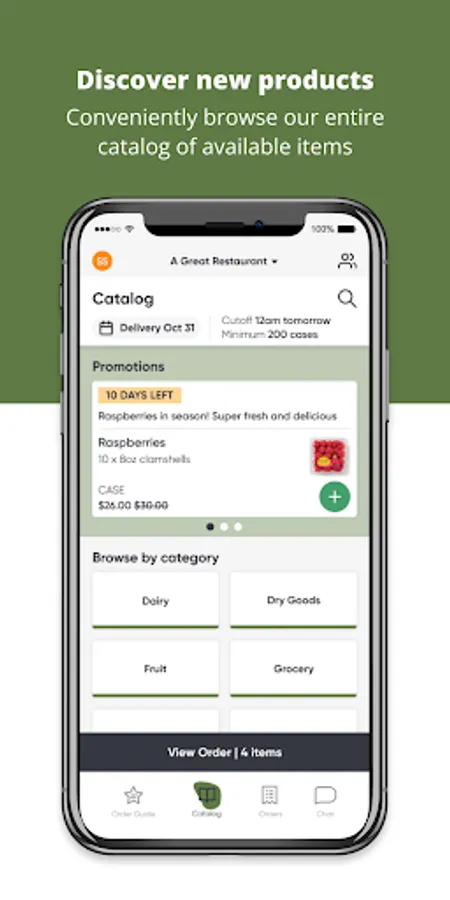 - Keep everything together: delivery days, cutoff times, order updates, and promotions all in one - place