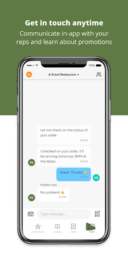 - Get in touch anytime: communicate directly with your Peddler's Son rep in the app