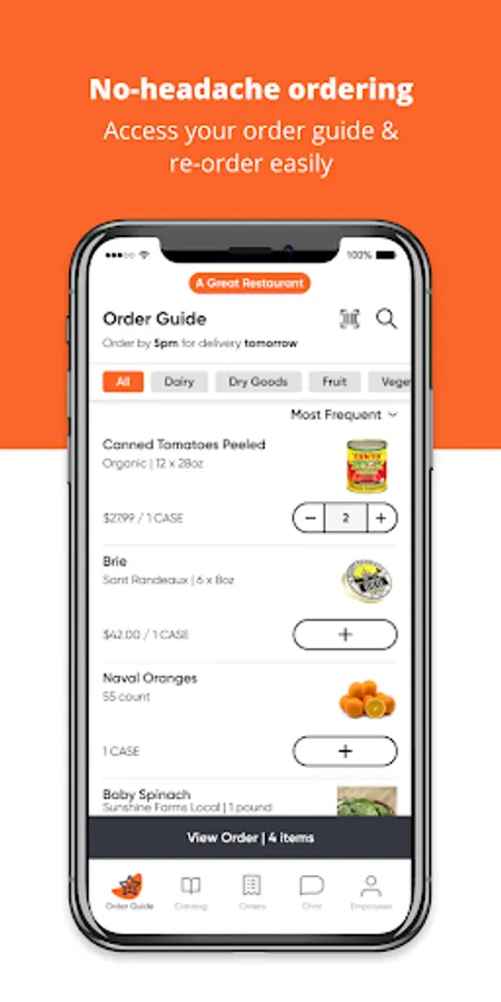 Our mobile app lets you search our complete product catalog, manage and update your ordering guide, and buy what you need at the moment you need it. It’s part of our commitment to giving you an ordering experience you’ll love.