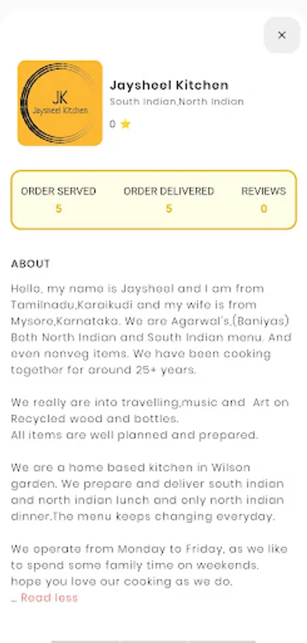 • All our chefs are FSSAI certified. So, worry not about hygiene. Garden-fresh ingredients, safe, health-friendly home-cooking practice.