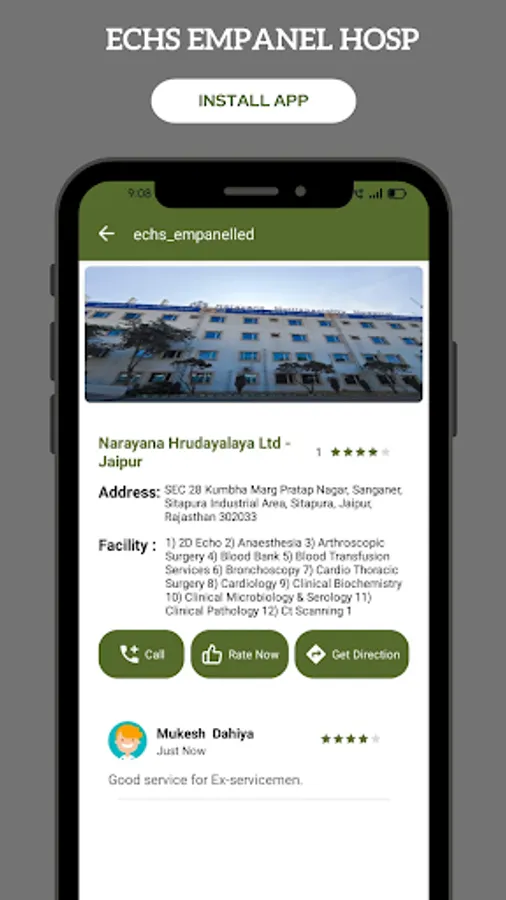Then, it will show the complete list of ECHS empanelled hospitals in the city. Fouji Adda app has also listed available medical facilities in ECHS hospitals. The ECHS beneficiary can contact the hospital through Fouji Adda App by clicking the call now button and clear their query in the comfort of their home. They can review and rate any ECHS hospital service, which will be helpful for the ESM community. You will get navigation assistance in the ECHS section also.