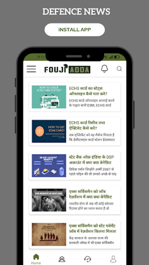 In this section of the Fouji Adda app, the users will get all the latest updates about defence welfare. It covers news like defence pension, Sparsh, ECHS, CSD canteen, pay commission, ESM reservation in Govt jobs and other welfare schemes. The user can filter news as per the category.