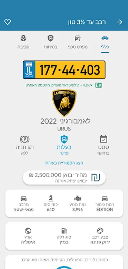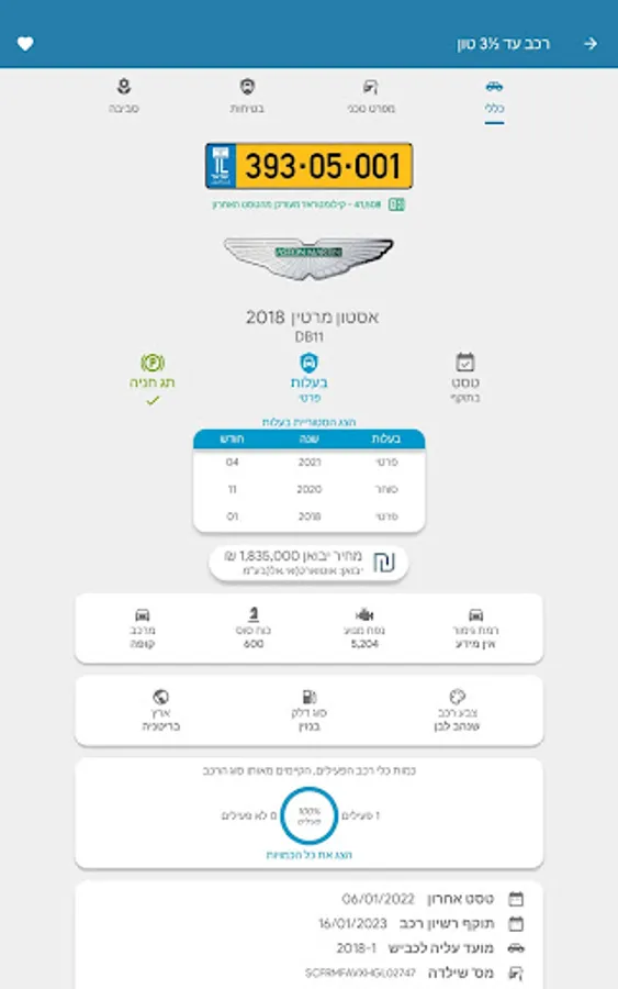 ∙ היסטוריית בעלות ושינויי מבנה שנעשו ברכב
