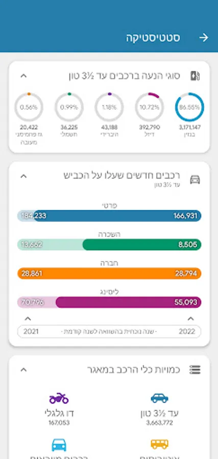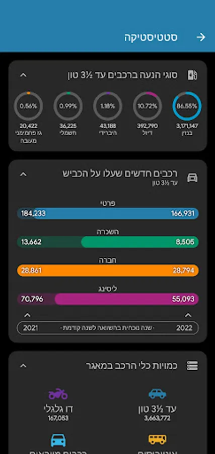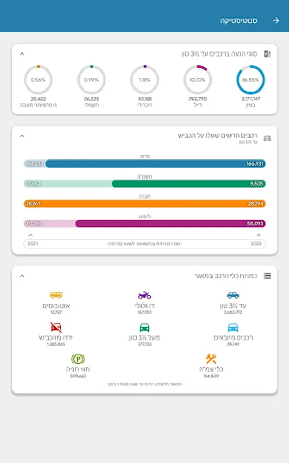 ∙ סטטיסטיקת השוואת רכבים חדשים שעלו על הכביש ביחס לשנה שעברה ועוד