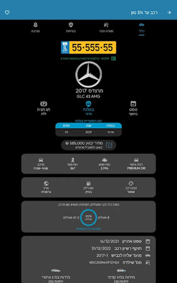 ∙ קילומטראז' נוכחי מעודכן מהטסט האחרון