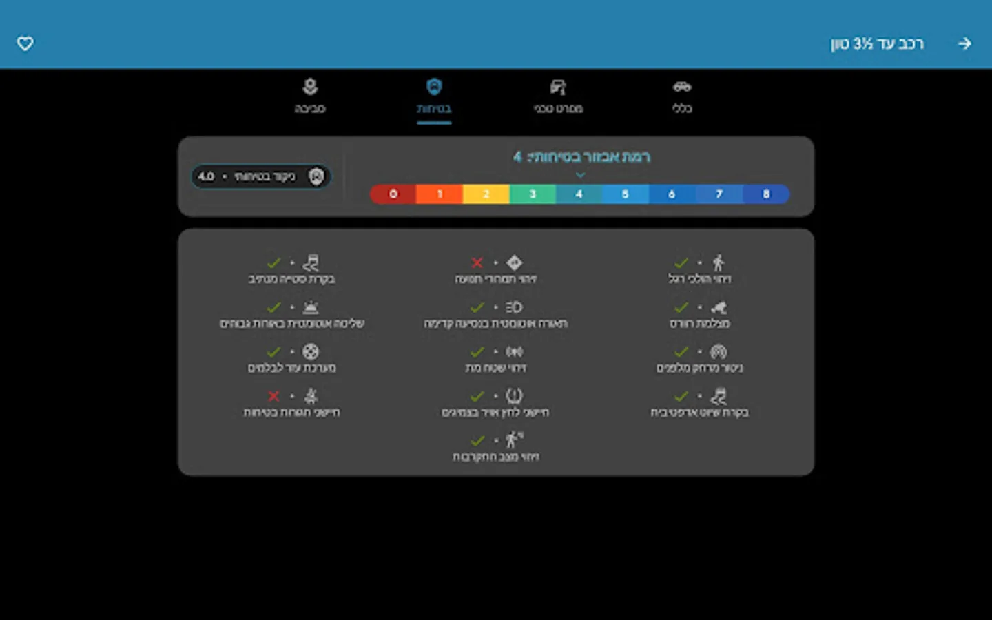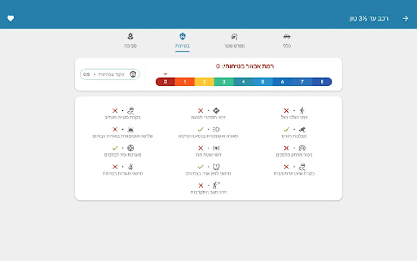 ∙ מידע על רכבים אשר מותקנים בהם מערכות בטיחות ומסננים לצמצום פליטת מזהמים