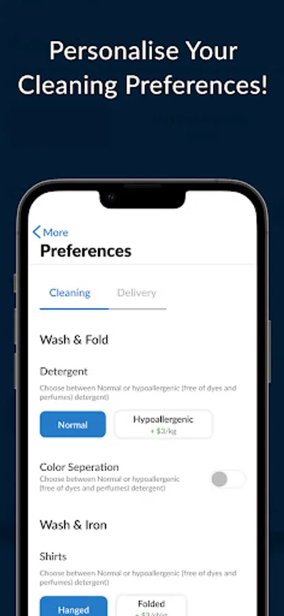 Effortless Ordering: Discover the most competitive service options available, including Wash and Fold, Wash and Iron, Iron, and standard & Premium Dry Cleaning and even repairs & touch ups!