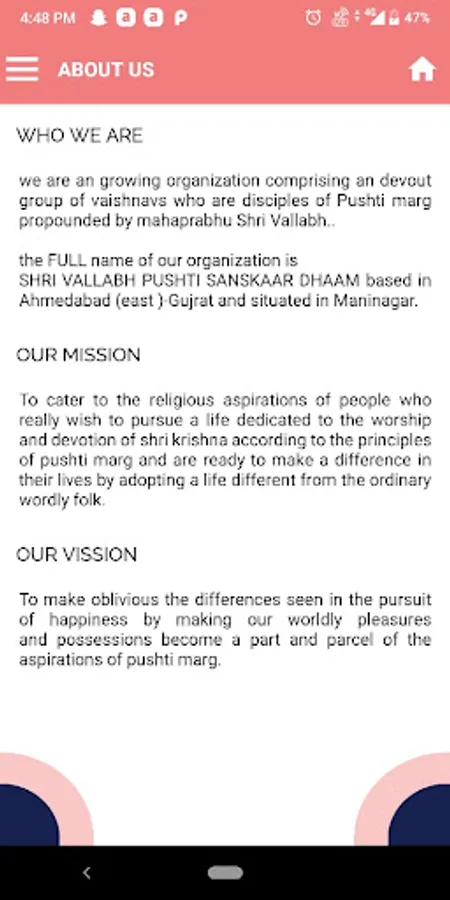 The FULL name of our organization is SHRI VALLABH PUSHTI SANSKAAR DHAAM based in