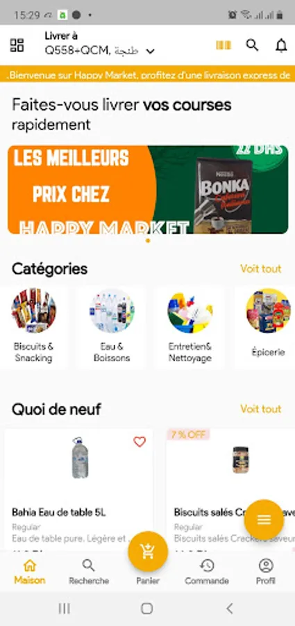 Shop online and get your groceries right at your doorstep in no time. More than 5000 references on our application with very attractive prices.