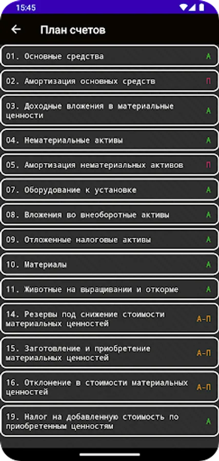 Assistant application for students and accountants. Contains a chart of accounts with a description of each account and examples of typical transactions. It is possible to search the list of business transactions.