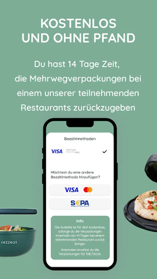 rezzeat, das pfandfreie Mehrwegsystem mit dem du deine Bestellungen beim Pizza-Service in nachhaltigen Mehrwegverpackungen erhältst – egal ob Pizza, Salate oder Nudelgerichte.