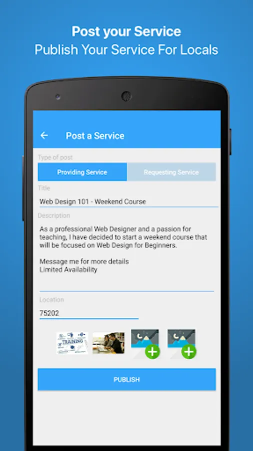 -Spend less time searching for a service when you can just take a minute posting a requesting ad for locals to come to you