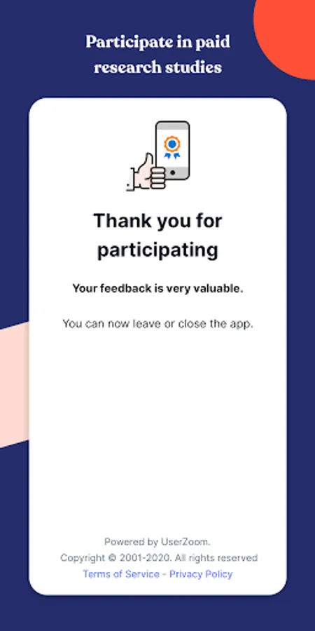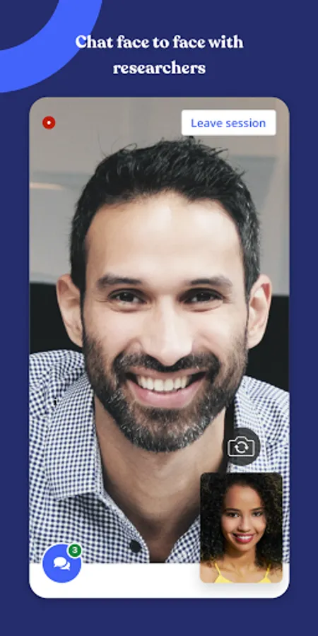 UserZoom Live app collects and stores your responses when you participate in a session. This may include audio and video recordings made using your camera and microphone during the session. You will always be clearly notified before any recording starts.