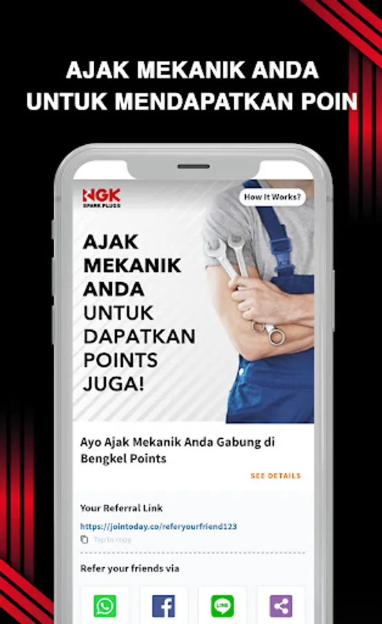 - Point setiap kali melakukan Scan Kode pada kemasan produk NGK Busi