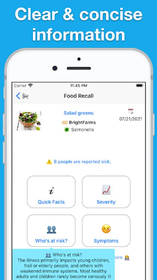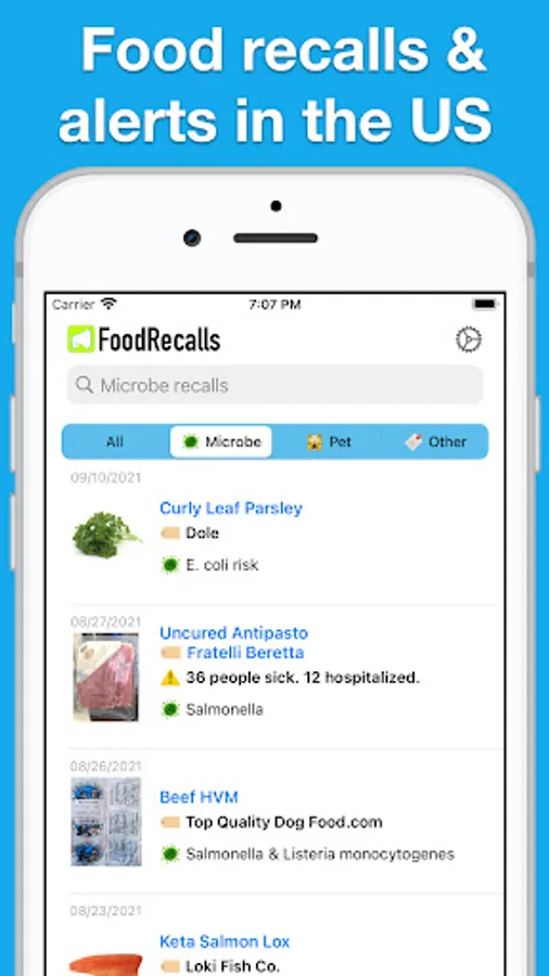 * Get official food recalls, outbreaks & alerts from CDC, FDA and USDA