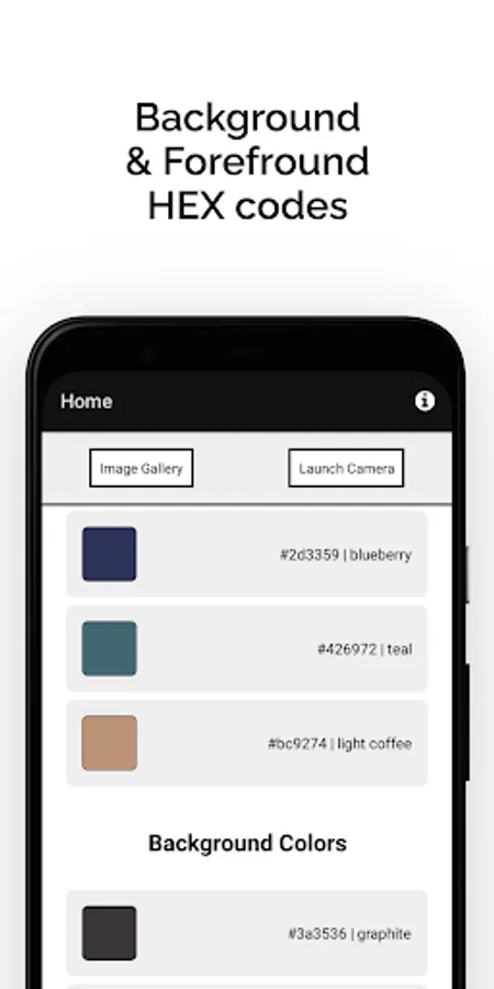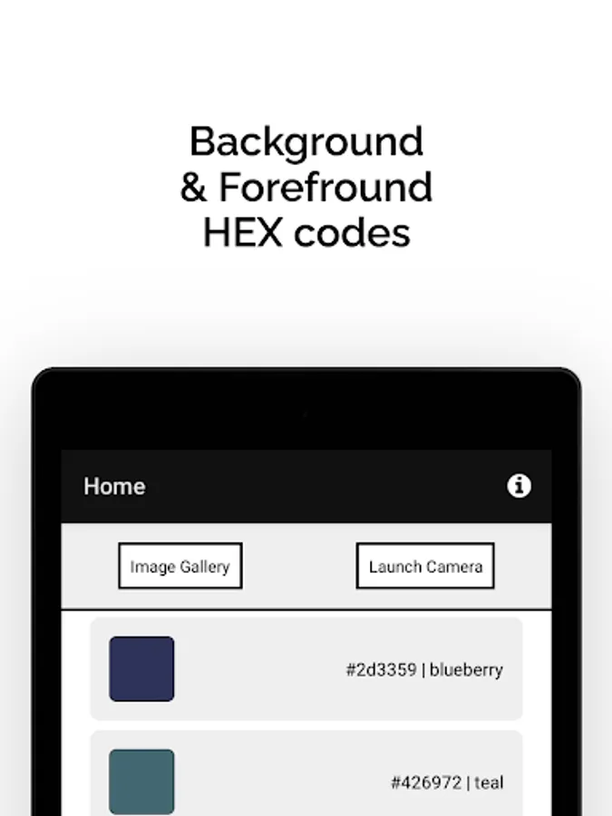 With this app you can upload an image or take a picture and get the HEX color code! We also provide a name for the relevant color and the ability to copy codes to your clipboard.