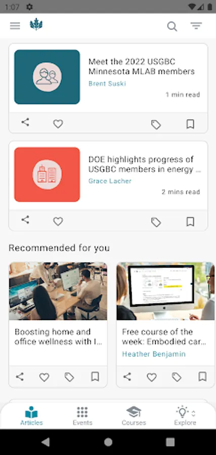 In Explore, you can explore Members, People, Communities, and Projects actively contributing to a better living environment. It also allows you to access Resources that provide help content to contribute to greener buildings.