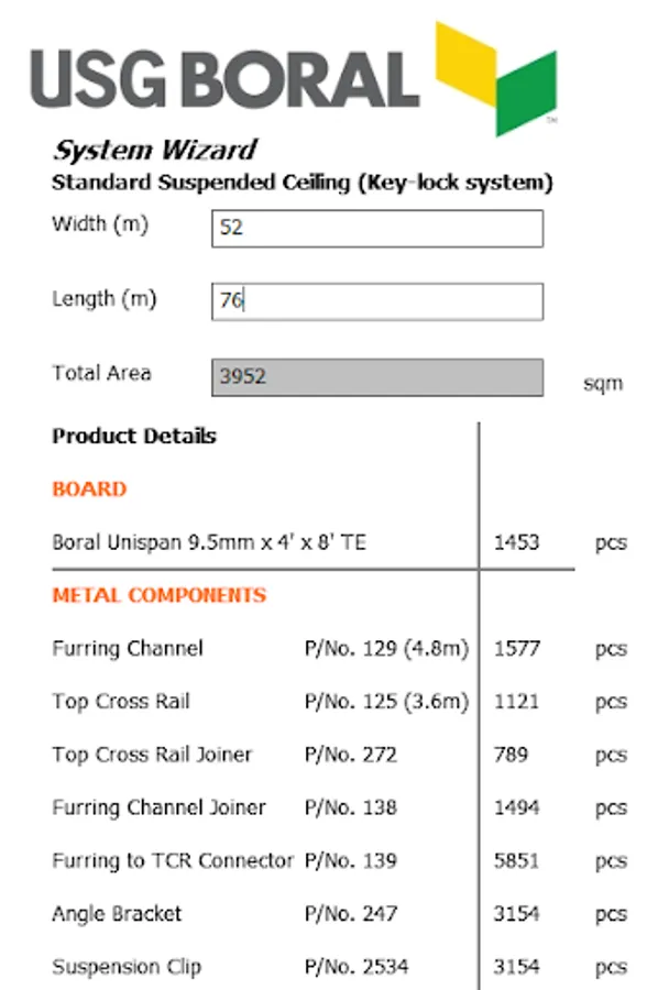 Boral Plasterboard Malaysia has developed a range of calculator tools to assist contractors and builders to quickly and easily calculate the quantity of materials required for standard ceiling installation.