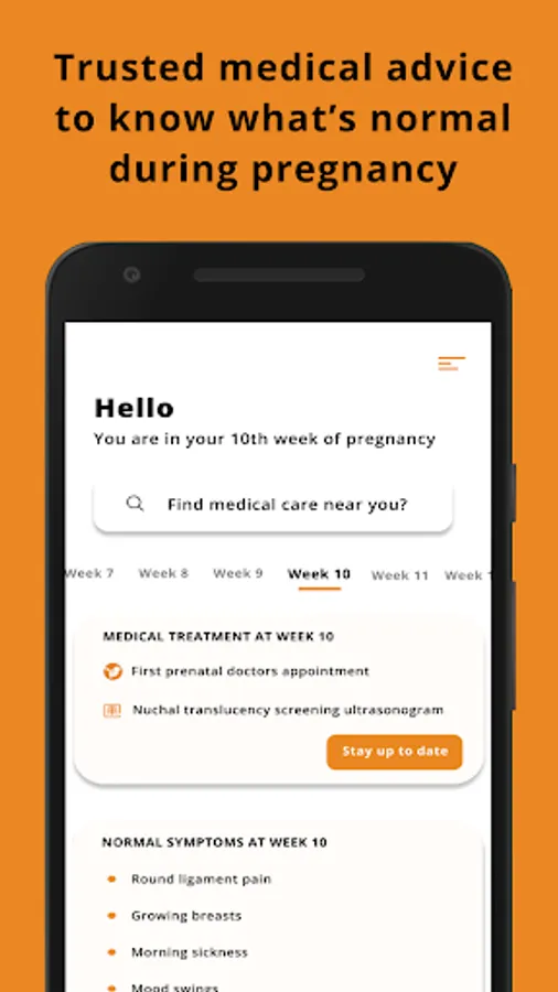 During pregnancy, the Usha app lets you keep track of your estimated due date and understand what you should be doing each week. Log your symptoms in the app, like abdominal pain and nausea, to help you stay in control of your health.