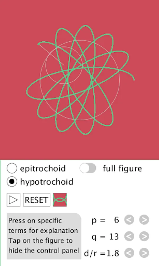 A spirograph is a tool that produces geometric curves by rotating a circle inside or outside a fixed circle. A hypotrochoid is produced when the rotating circle is inside and an epitrochoid is produced when the rotating circle is outside the fixed circle.