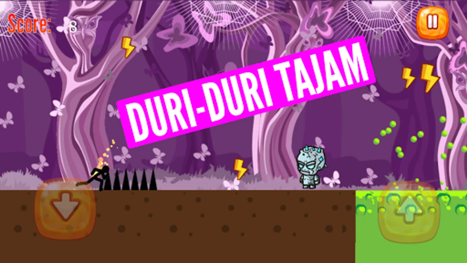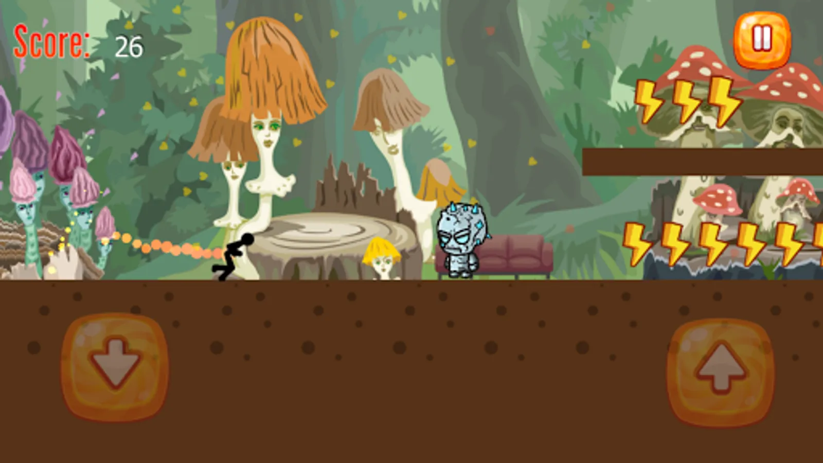 - Avoid various obstacles (giant balls, giant monsters, chainsaw traps, poisonous craters, etc.).