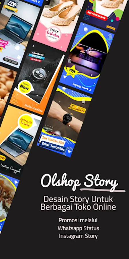 Create your own Online Shopping (Olshop) product promotion materials easily directly on your Android smartphone using this Olshop Story application.