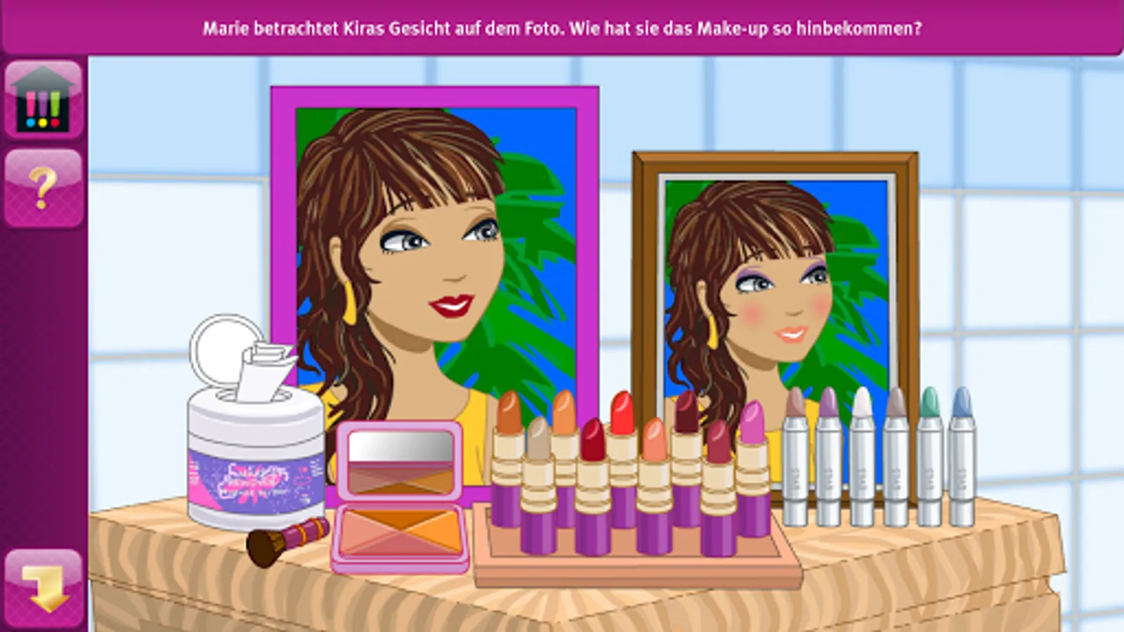 Meet with the three female detectives in their headquarters and help them to find clues. Lots of exciting puzzles, fun games and tricky tasks await you along the way. Sort Kira's manga collection, put together her favorite outfit, find the mistakes on the chocolate pack, help the boys fix the bike and put the shredded leaflet back together. This is the only way to find all the clues and to clear up the mysterious case.
