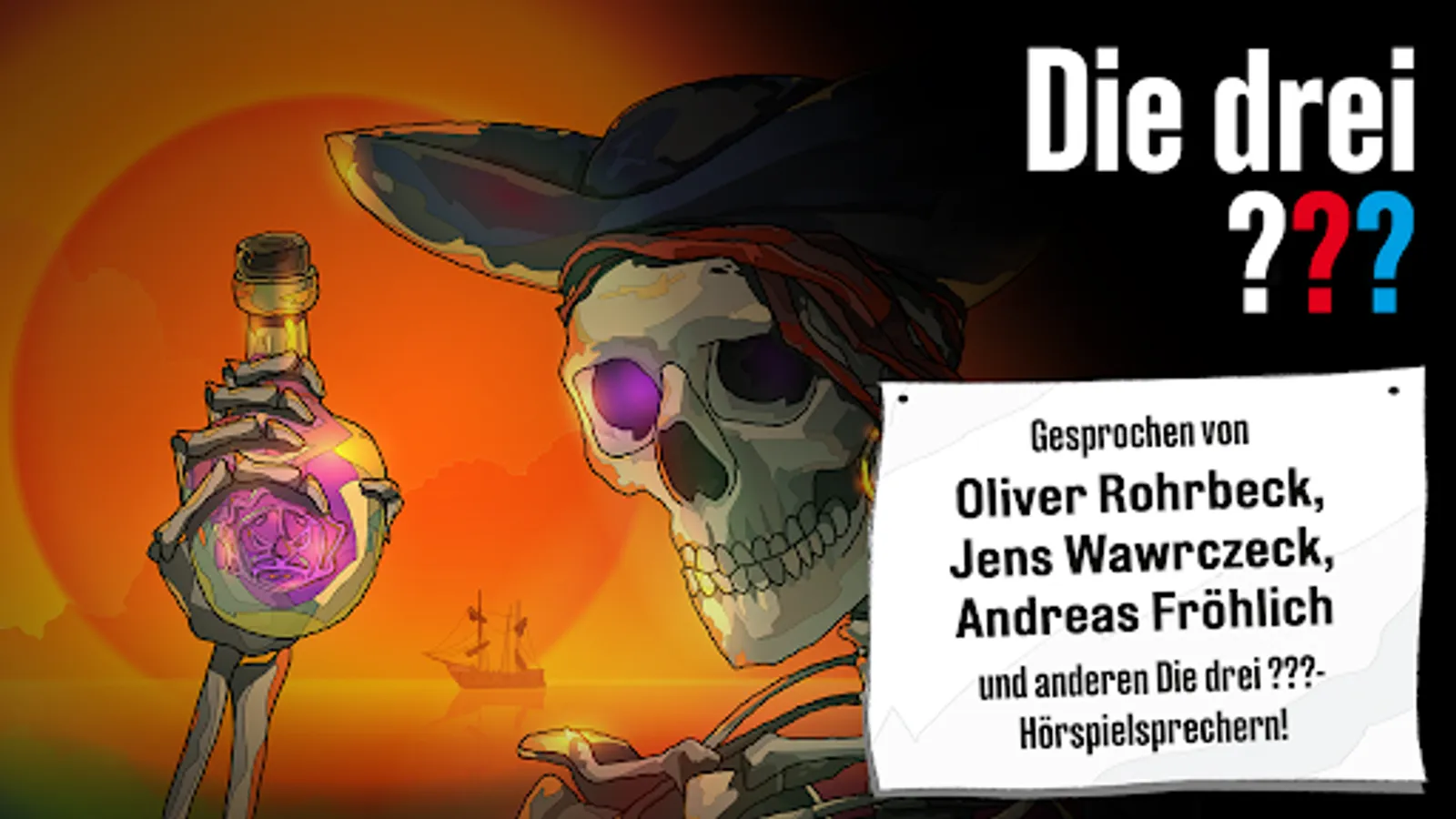 Rocky Beach has pirate fever! A literary circle organizes a treasure hunt. But is the bottle that the winner gets really cursed? Who sends the threatening letters to the organizer of the treasure hunt? And who is the spooky guest performing mysterious summons at the junkyard? When Blacky is kidnapped as well, you have to hurry...