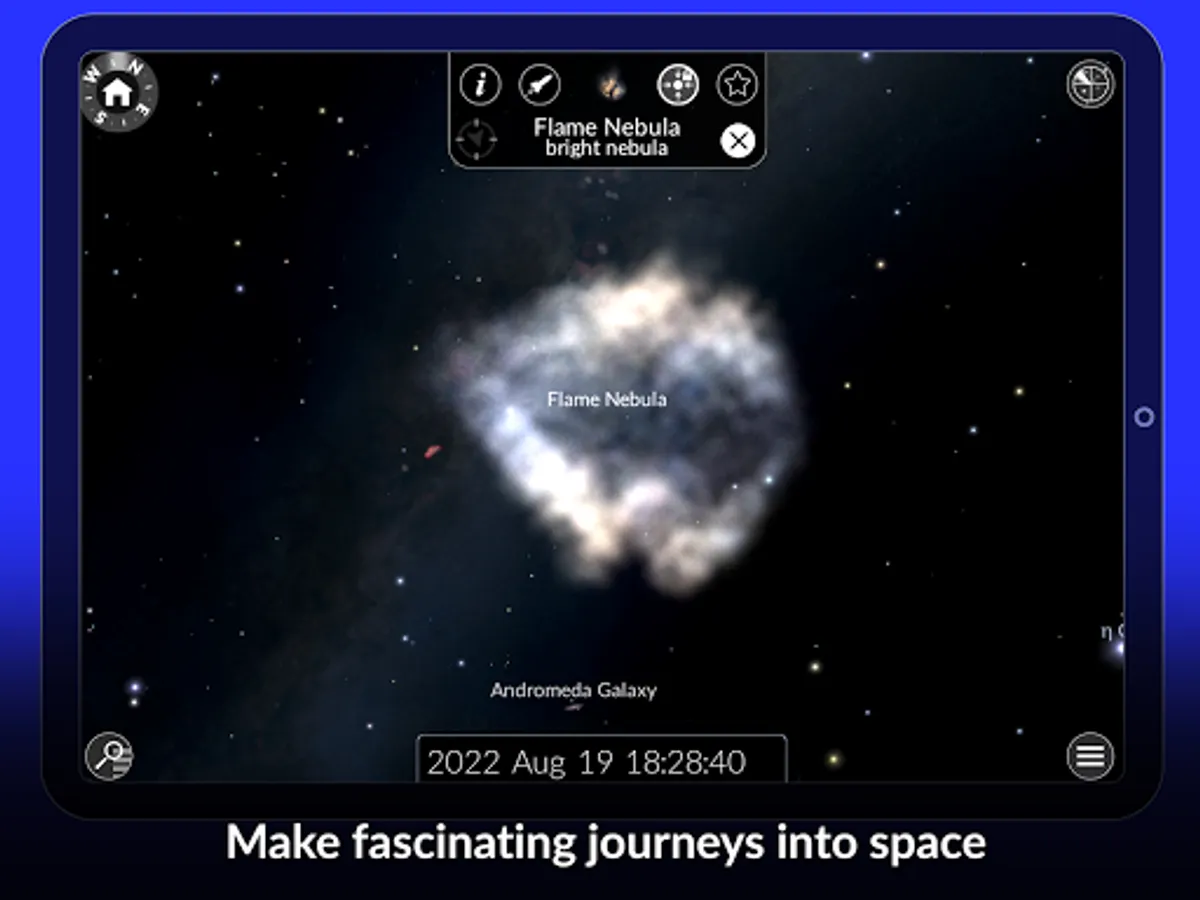 • Take breath-taking flights through space to distant stars and colorful nebulae
