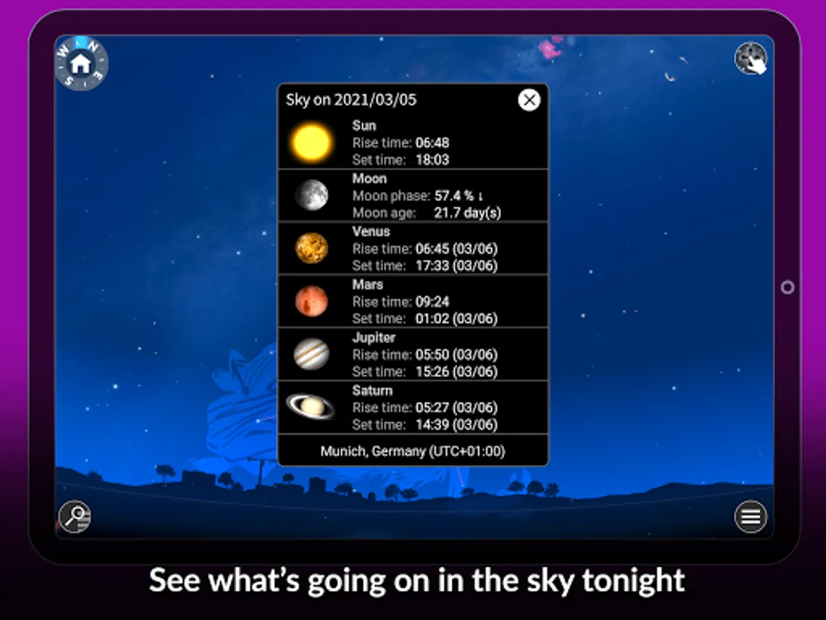 Which star is this? Where do I find Mars? Is it the ISS up there? Hold your smartphone or tablet up to the sky and see which planets, stars, or constellations are above you.