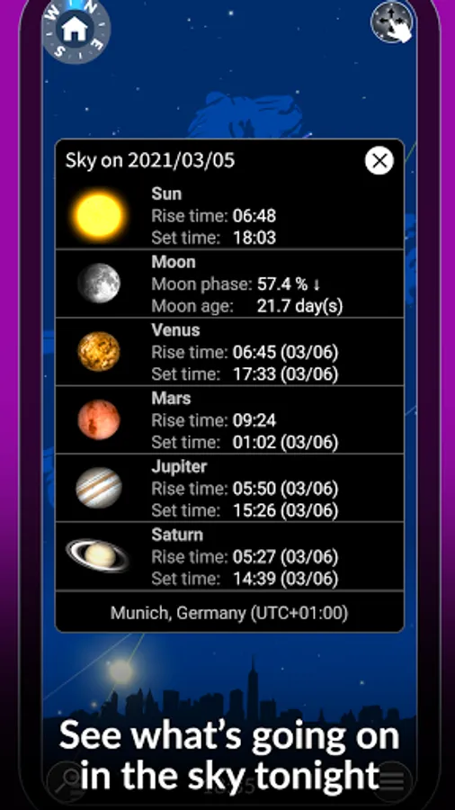 The app contains more than 9,000 stars, 88 constellations, hundreds of moons, asteroids and comets, as well as 200 spectacular deep-sky objects - all with accurate position calculation and motion tracking in real time.
