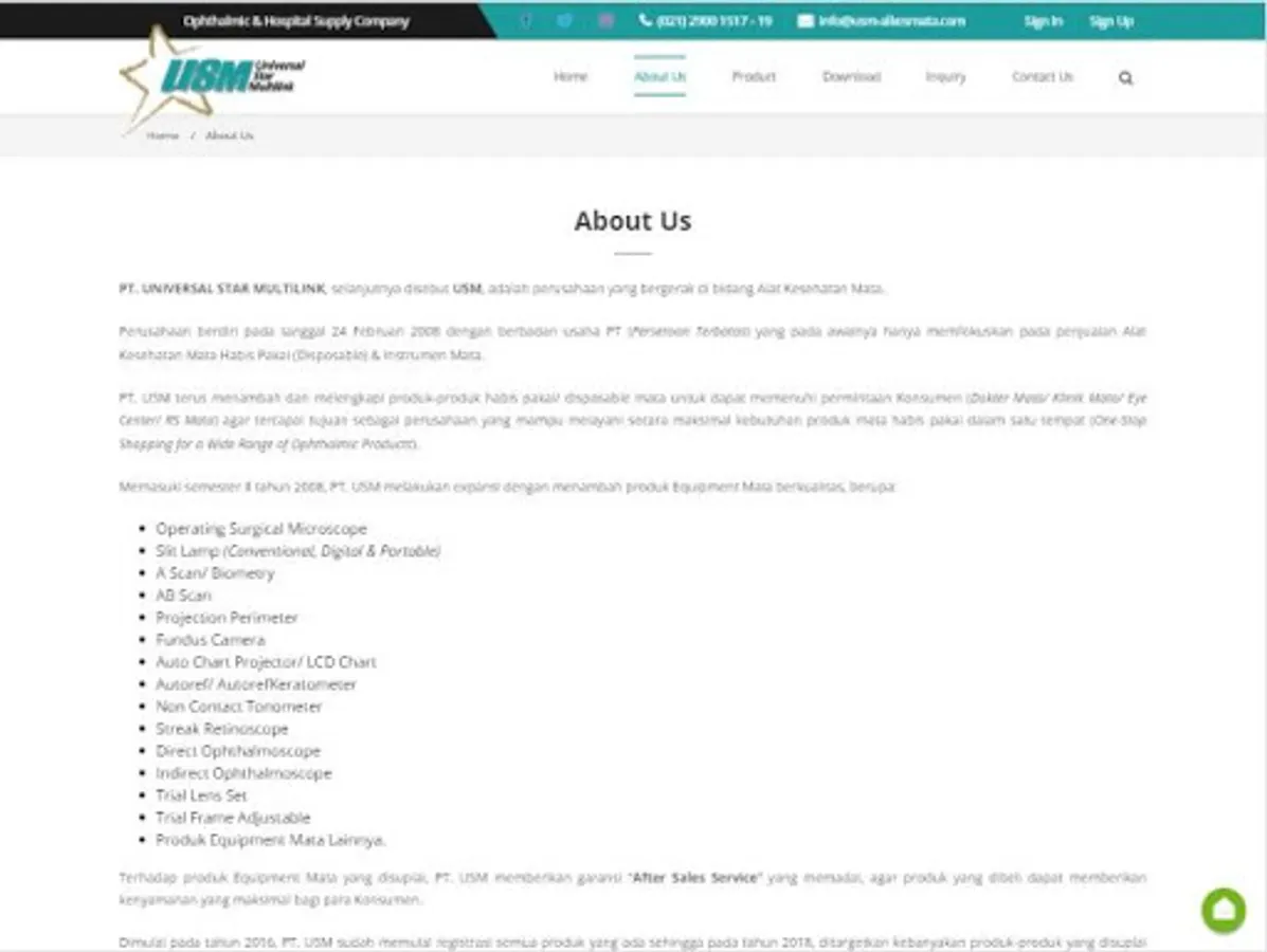 PT. UNIVERSAL STAR MULTILINK, hereinafter referred to as USM, is a company engaged in the field of Eye Health Equipment.