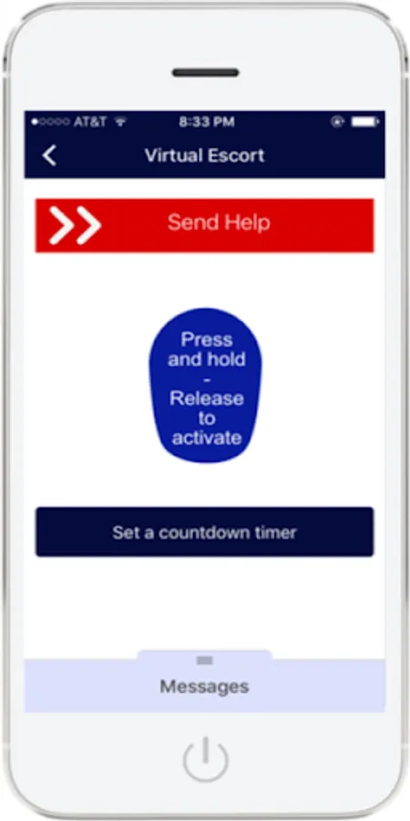 “Virtual Escort” is designed to allow the user to hold down a button on their smart phone in advance of being in a compromising situation, if help is required you would let go of the button. The user has 5 seconds to cancel or allow the time to expire which will activate the alarm to the central station. A few examples when you might use this feature would be walking to your car late at night, or at an ATM machine.