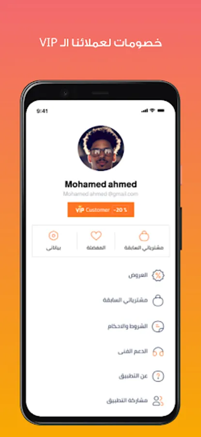 يوفر التطبيق الدعم الفني المباشر حيث يمكن للعميل الحصول على جميع الإجابات التي يريدها وبشكل عام يمكنه الحصول على طلبه في أسرع وقت ممكن.