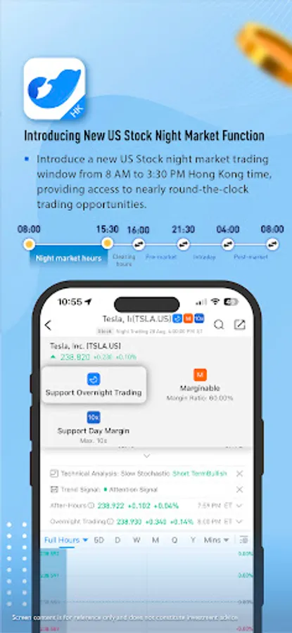 No matter day or night, you can trade US stocks across time zones, without staying up all night for trading stocks, and you can have a good night's sleep even when focusing on investment!