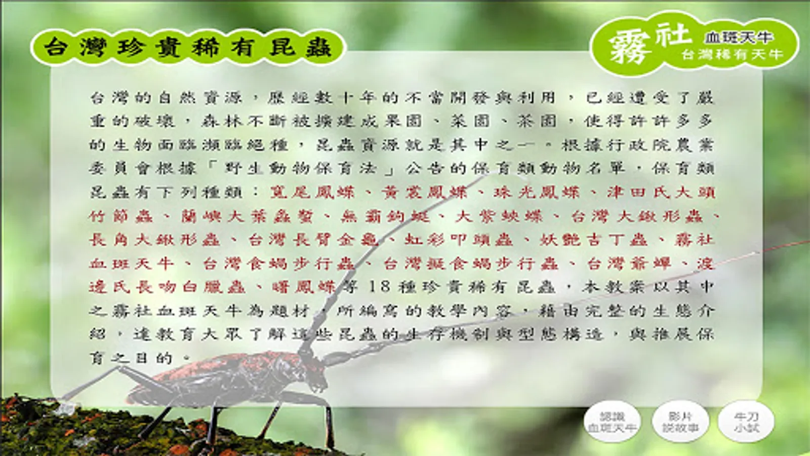 Introduce the unique species of the foggy society, the blood-spotted beetle, through interactive content.