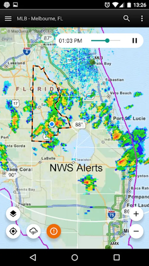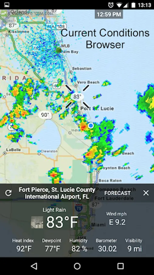 RadarNow!® is dedicated to delivering the most accurate radar images, current conditions and hourly forecasts straight from NOAA's servers, ensuring you receive trustworthy data. For those interested in TDWR sites (higher resolution but shorter range), these are represented by aqua icons, easily selectable with a touch.
