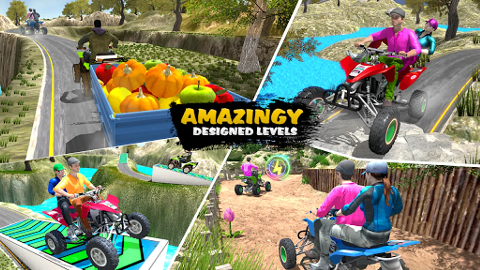 this one of the best A bike game have two unique ideas one of them is to drive quad bike on extremely challenging impossible tracks by getting check points stunts are realistic and well designed and you can drive quad bike trolley on offroad it is a very interesting idea to convert a tractor trolley game into quad bike trolley cargo game as you drive cargo vesicles to deliver goods in this quad trolley game you have to cargo multiple things from one place to another.