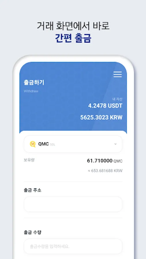 You can easily withdraw from the transaction screen by selecting the desired coin among the three coins (QMC, SVQ, TRX).